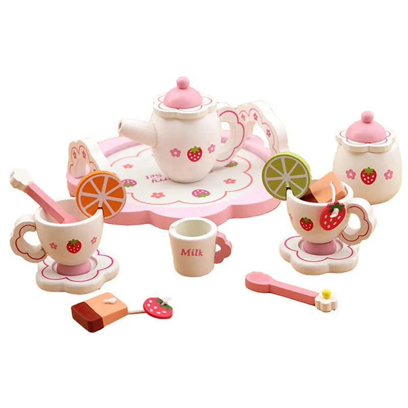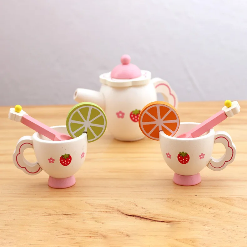 Wooden Play Tea Set Simulation Afternoon Tea Coffee Machine Teapot Tableware Kitchen Baby Toys Cutting Fun