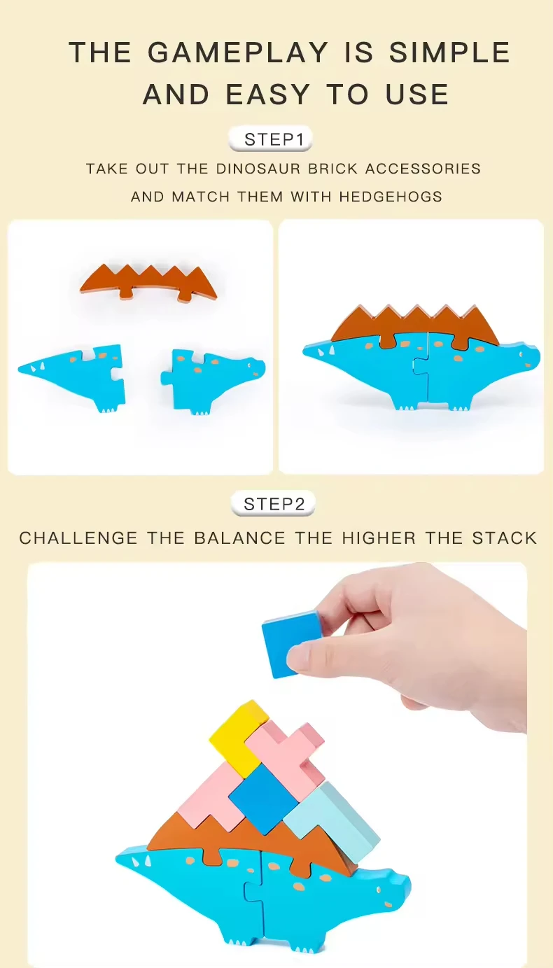 CPC Educational Wooden Building Blocks Kit Funny Dinosaur Balance Blocks for 2 to 4 Years Old Boys and Girls Fun Playing Toy