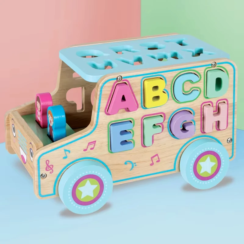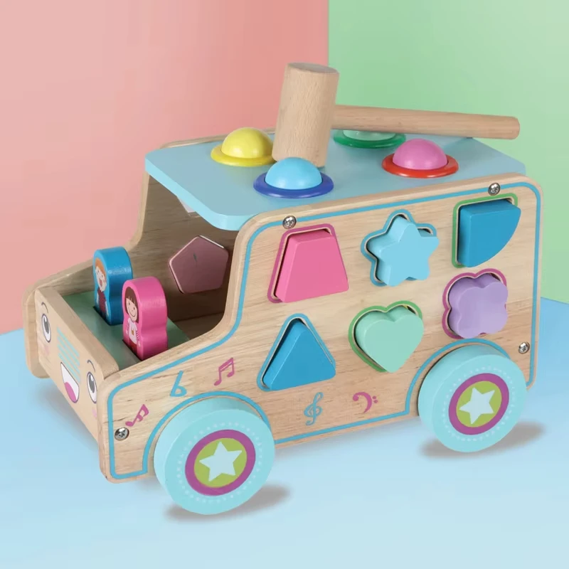 Multi-functional Wooden Dragging Intelligence Box Educational Math Shape Matching Trailer Puzzle Toys