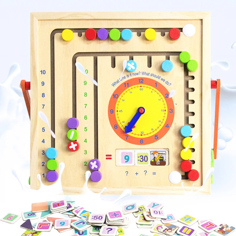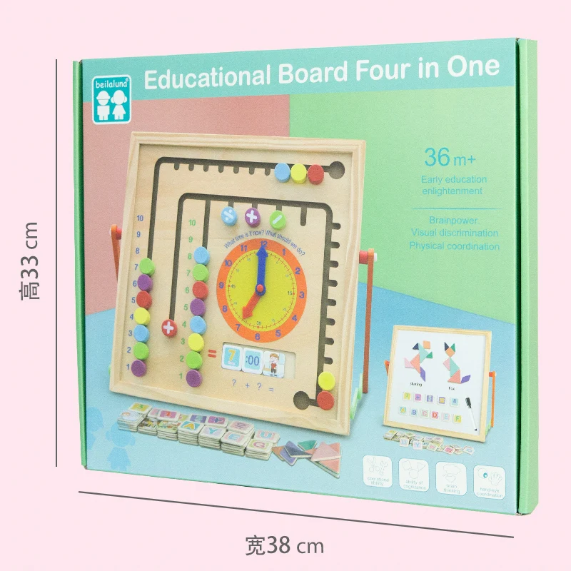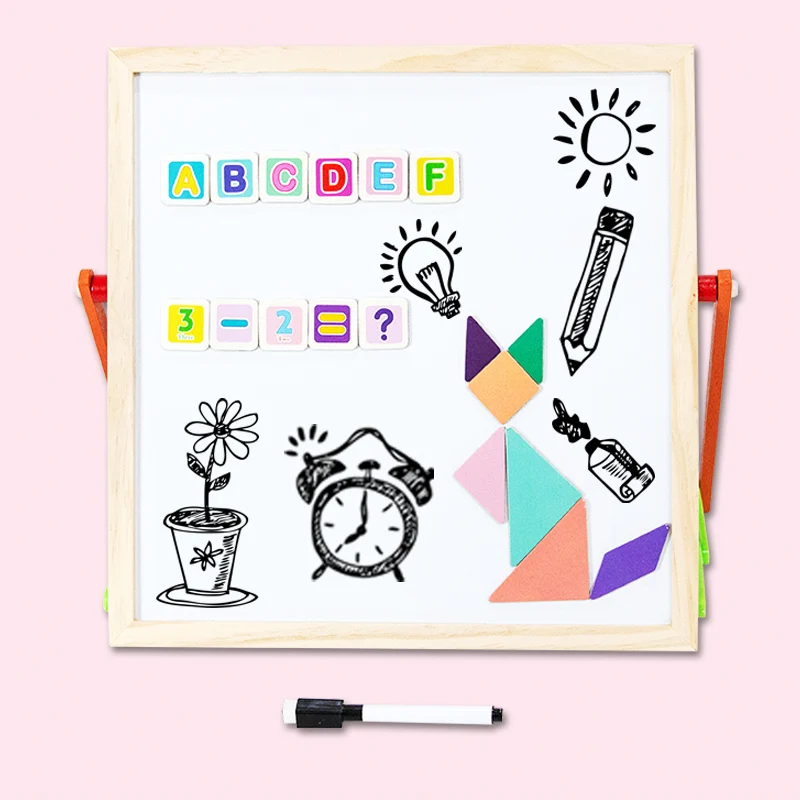 Child Puzzle Learn Training School Education Toys Wooden Toys Artboard 4 in 1 Double-Sided Teaching Drawing Board Pretend Toys
