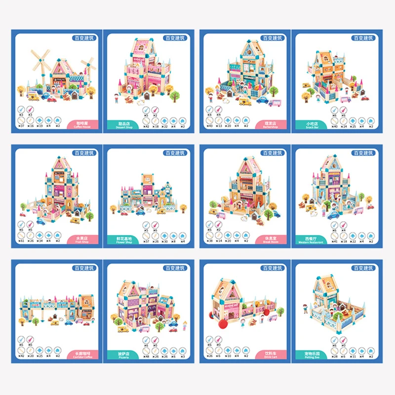 New Arrival Wooden Assemble Castle Villa Doll House Model Toy for Children Multi-functional DIY Building Block Play House Toy
