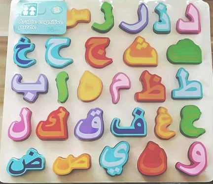 28pcs Montessori 3D Wooden Arabic Letters Alphabet Jigsaw Puzzle Early Education Learning Board Playful Toys for Kids & Children