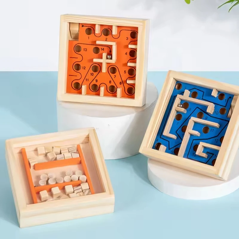 Children Wooden Toys Brain Teaser Track Ball Balance Toy Hand-eye Coordination Game Bearing Wooden Maze Box