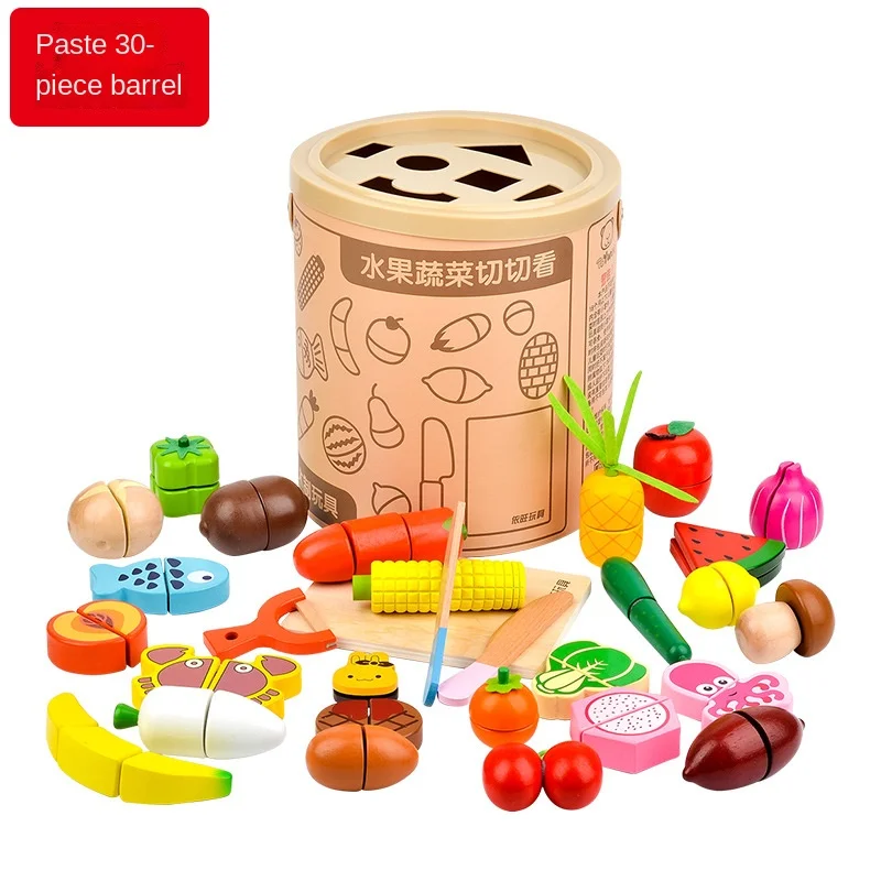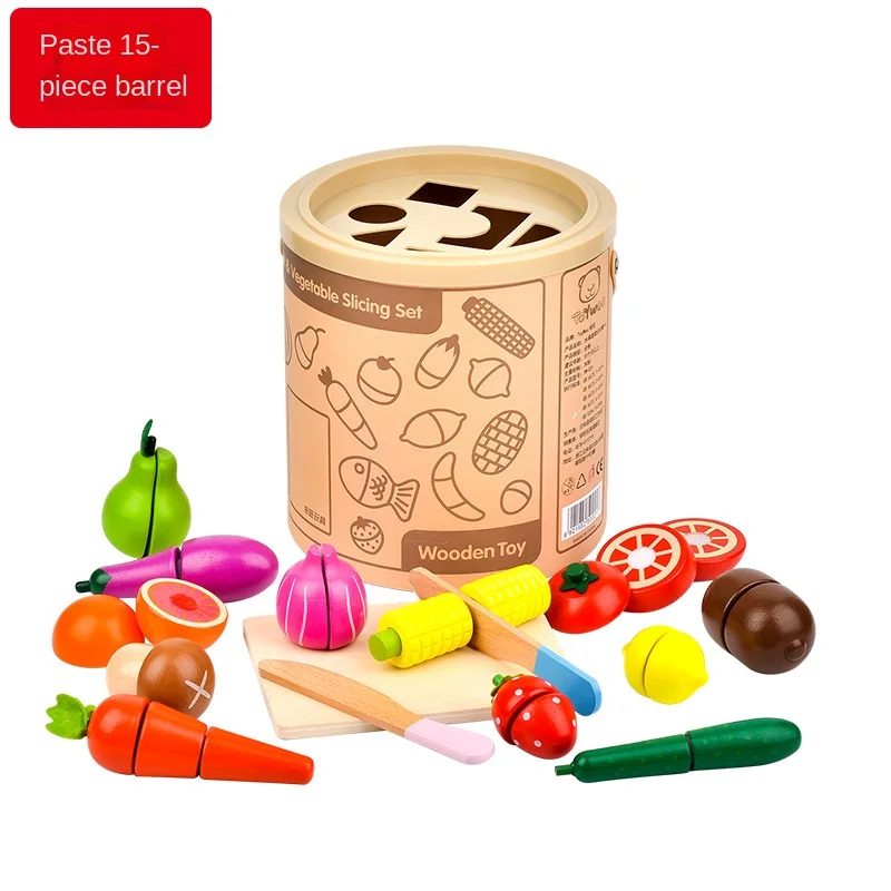 Wooden Pretend Play Children's Fruit Cut Toy Boys and Girls Kitchen Vegetable Cutting Pizza Play House Paste Food Toy