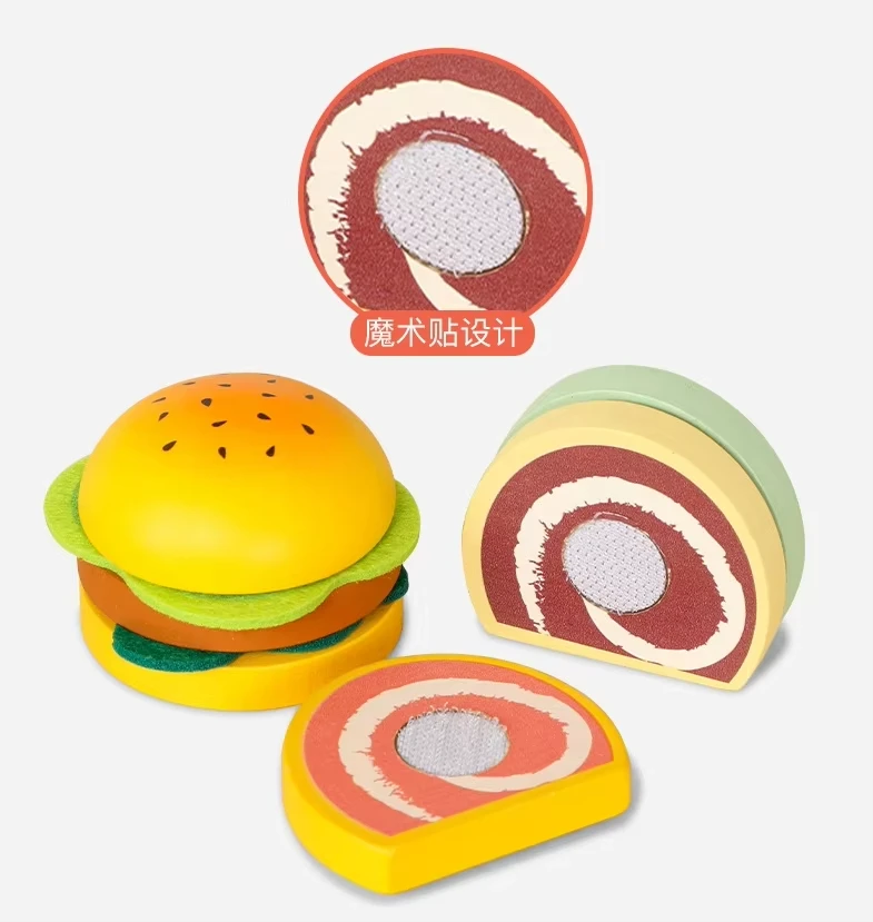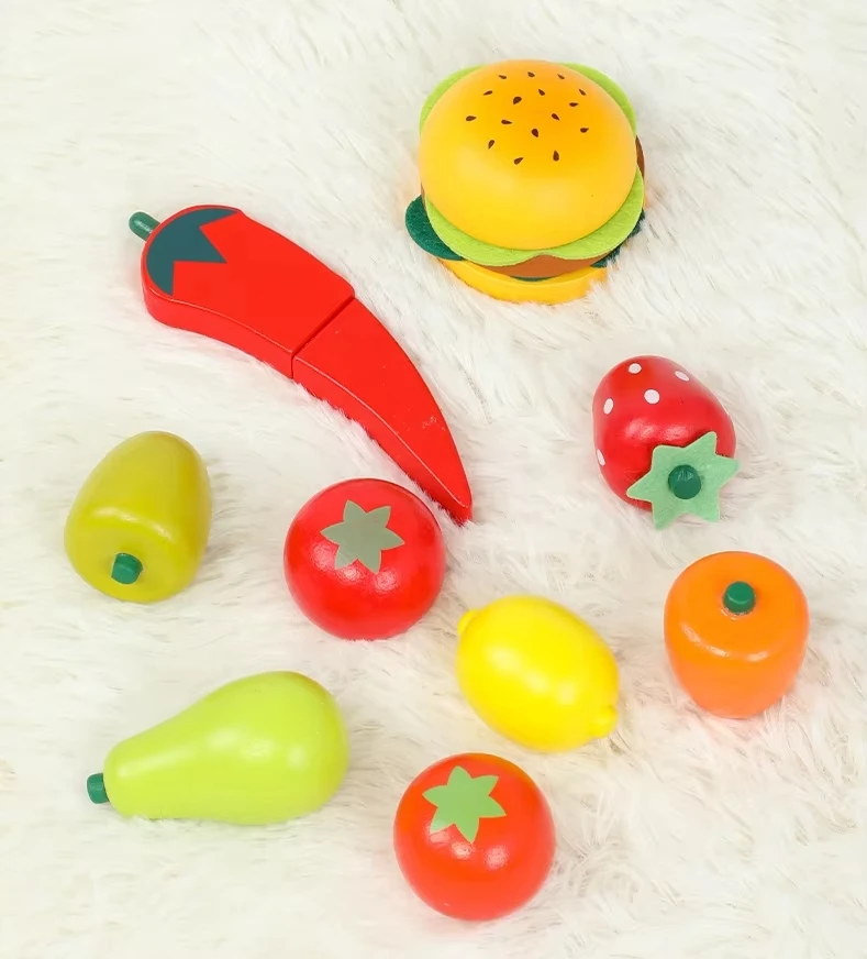Pretend Game Market Stand Wooden Grocery Store Toy Wooden Fruit and Vegetables Bread Cash Register Stand Toys for Kids