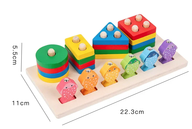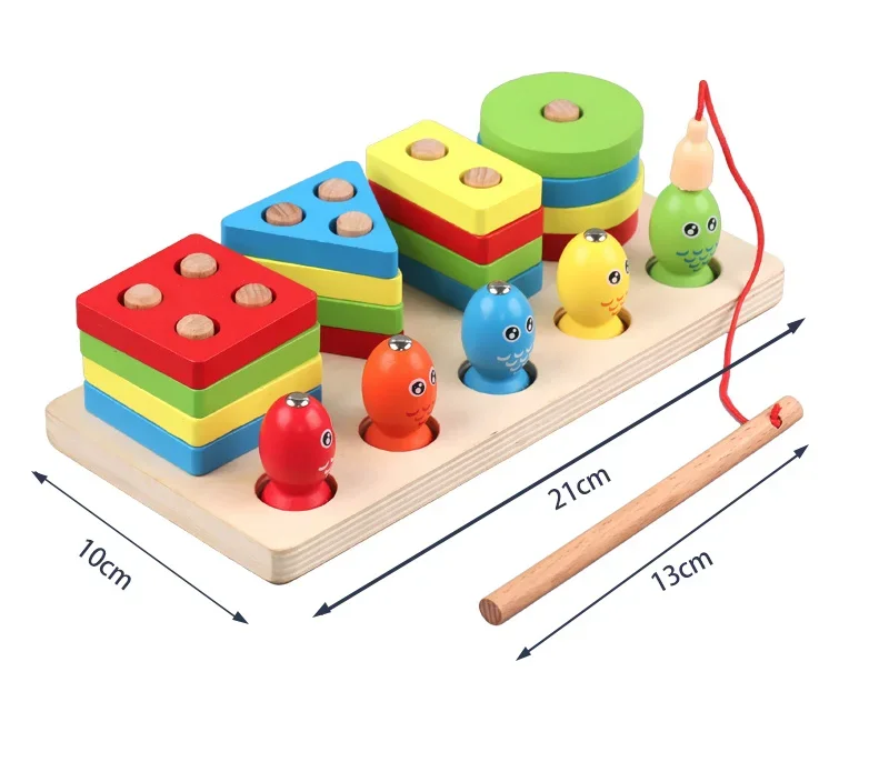 Wooden Montessori Toys for 3+ Year Olds 2 in 1 Toddler Learning Shape Color Sorting and Stacking Toys and Magnetic Fishing Game