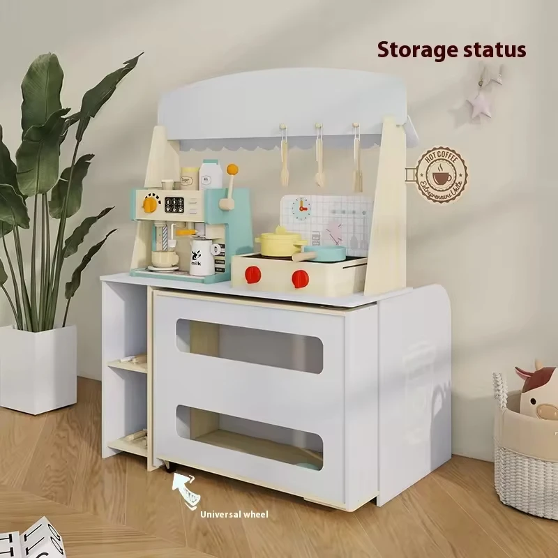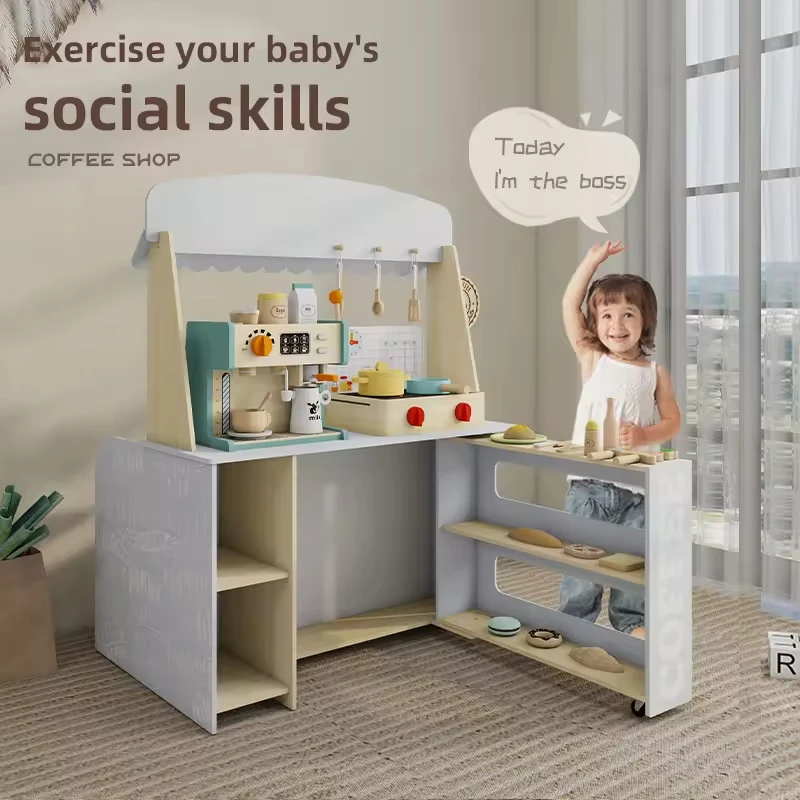 2-in-1 Wooden Pretend Play Set Mini Coffee Shop Kitchen DIY Baby Role-Playing Cooking Toy Paradise for Girls Boxed Small Shop