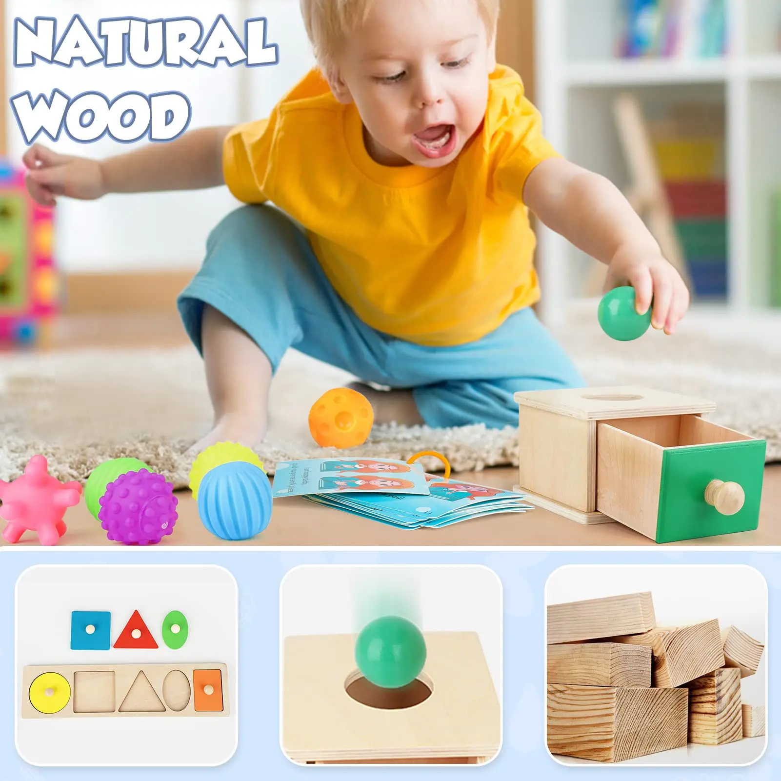 Baby Toys Montessori Toys for 2 Year Old Toddler Object Permanence Box Wooden Shape Sorter Baby Ball Baby Sensory Toys
