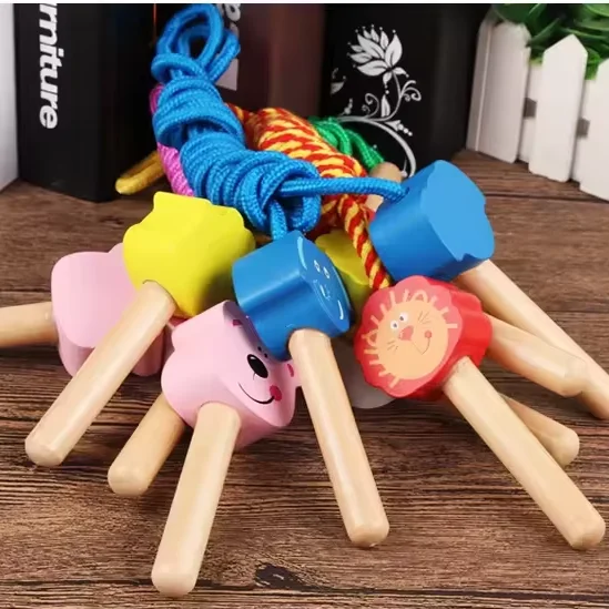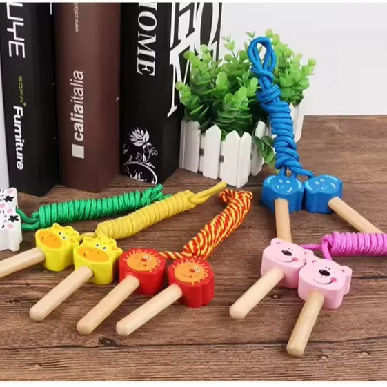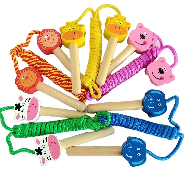 Wooden Jumping Toy Wooden Jumping Ropes Cartoon Skipping Rope Kids Physical Exercises Wooden Animal Handle Jump Ropes