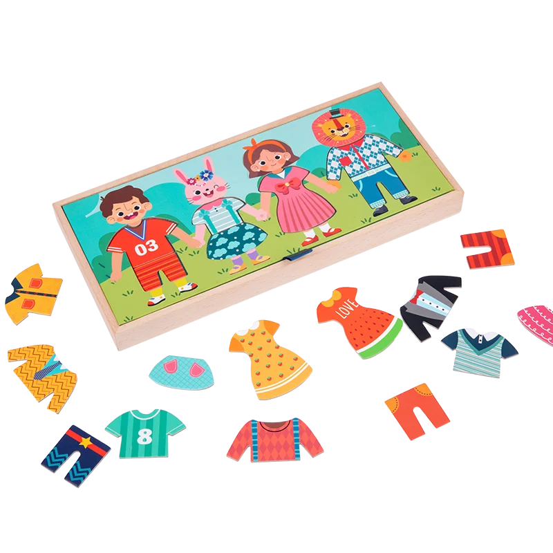 Fancy Kids Montessori Wooden Toys Drying Rack Clothes Dress-Up Jigsaw Puzzle Logical Thinking Matching Sorting Educational Toys