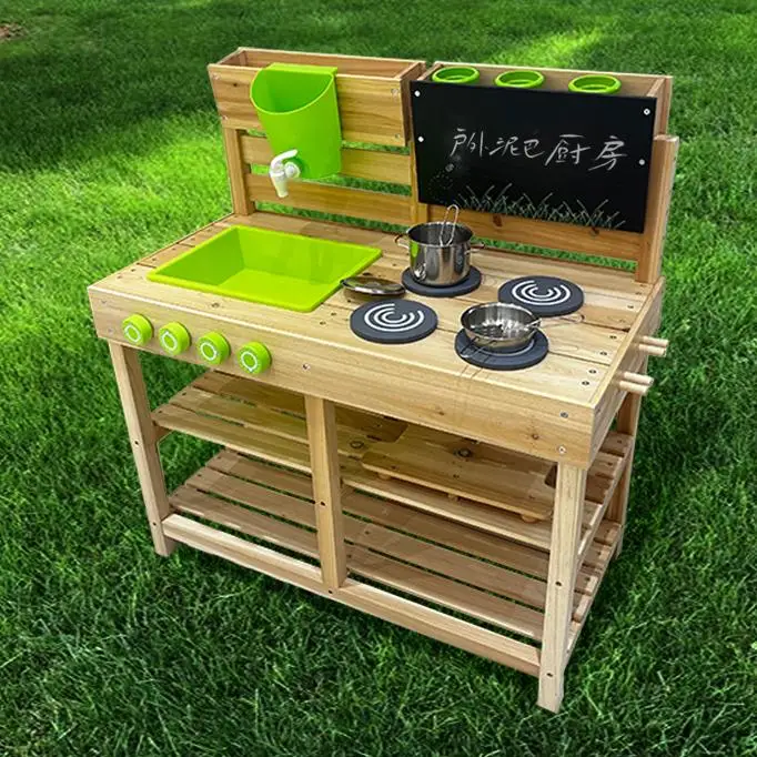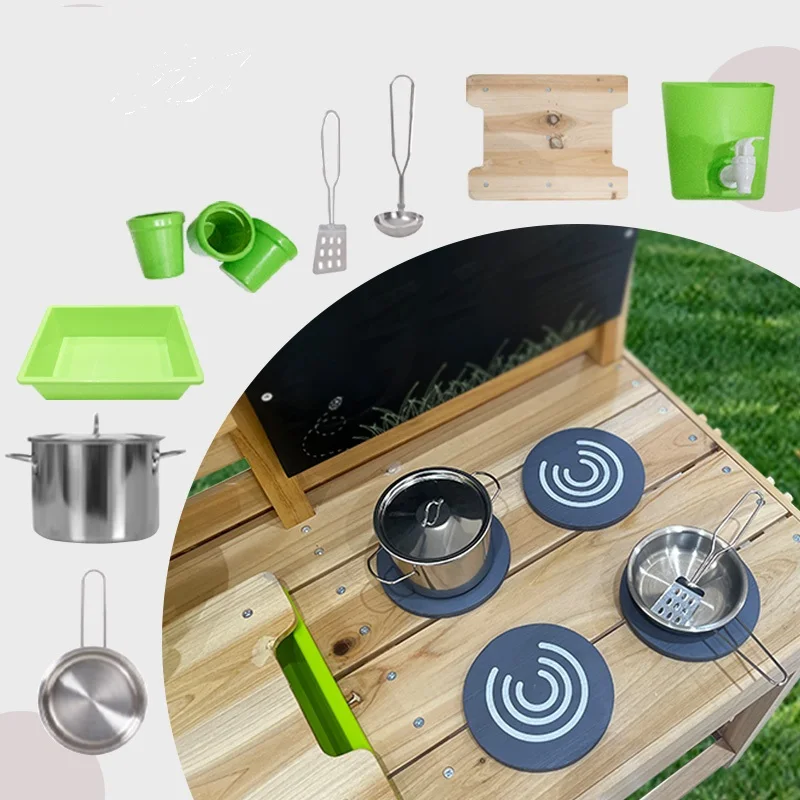Eibele Children's Wooden Role Play Family Outdoor Kitchen House Play Mud Set Game Educational Cooking Toys for Boys Girls