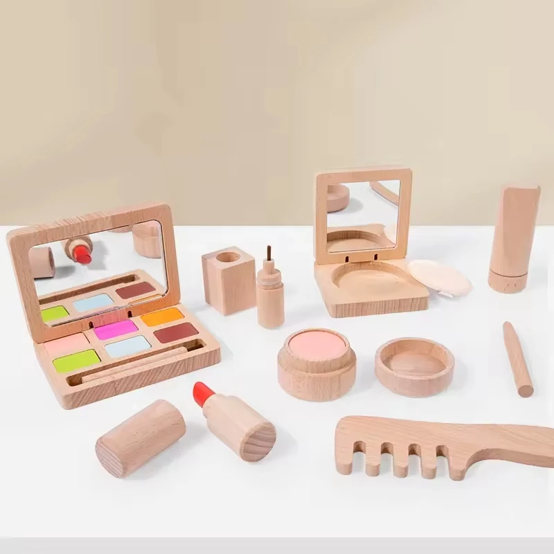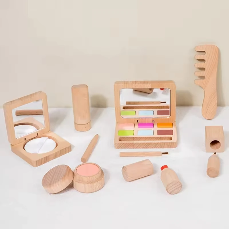 Solid Wood Pretend Play House Toy Beauty Girls Role Play Make up Toy Set Birthday Gift