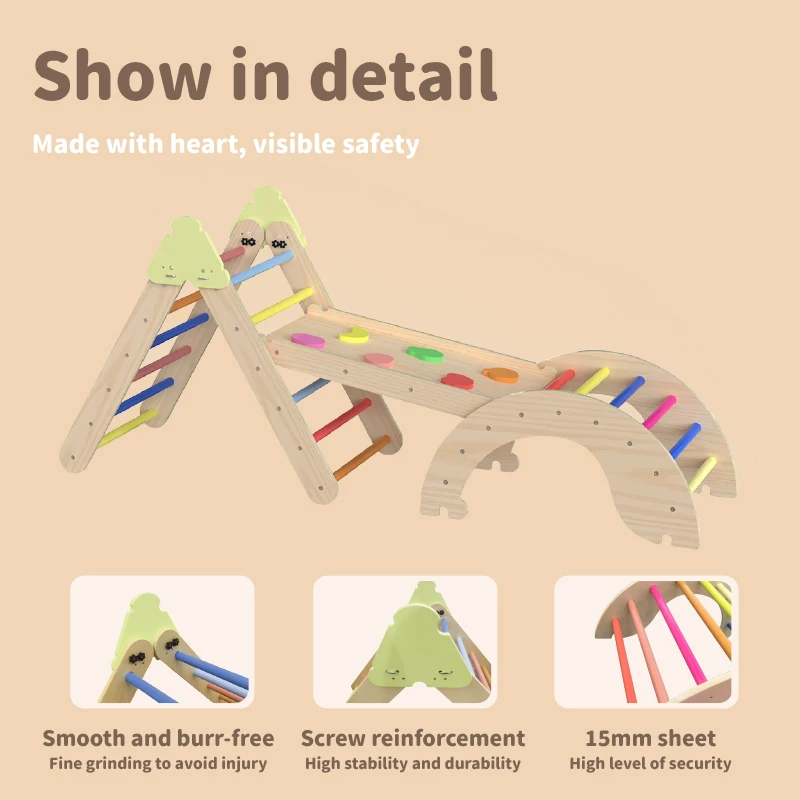 Customized Indoor Wood Baby Play Gym Kindergarten Children's Climbing Frame Gym Toys for Indoor Playpaces