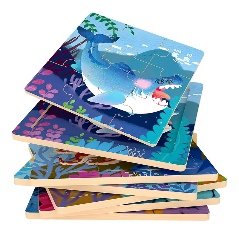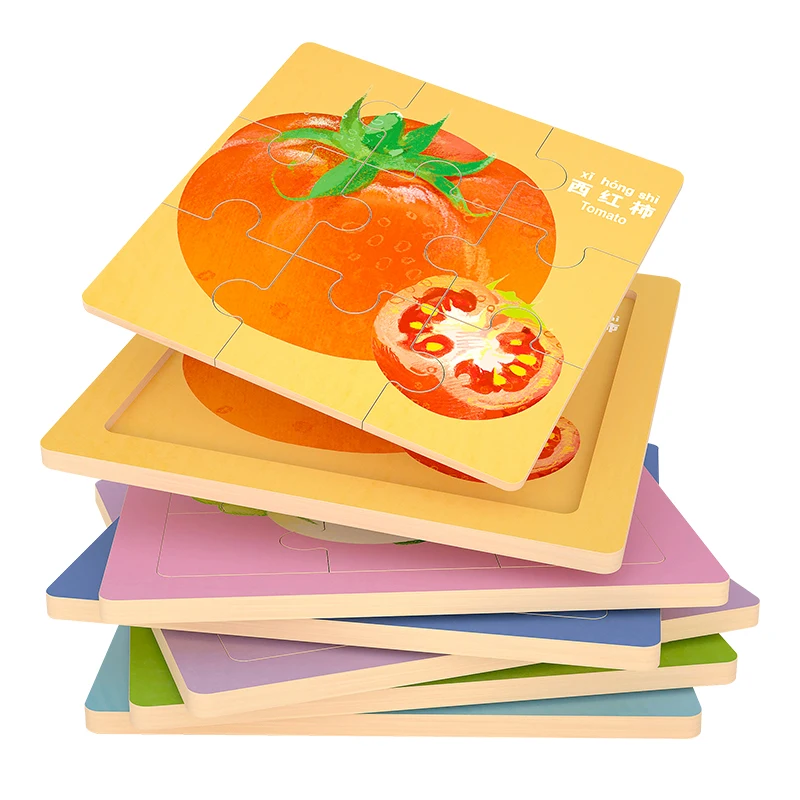 Best-selling Wooden 9 Piece Jigsaw Puzzle Sets Baby Juguetes Montessori Early Educational Board Game Toys for Kids Boys Girls