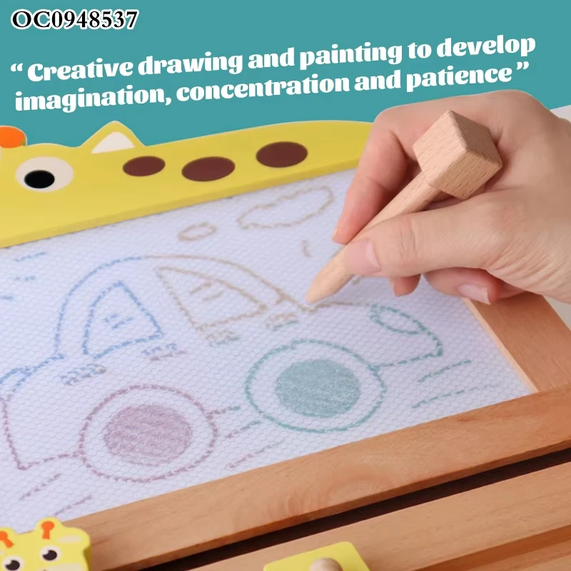 2026 New Montessori Children's Wooden Cartoon Erasable Magnetic Drawing Board Game Educational Painting Art Gift Toys for Kids