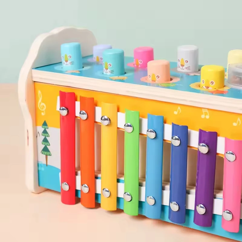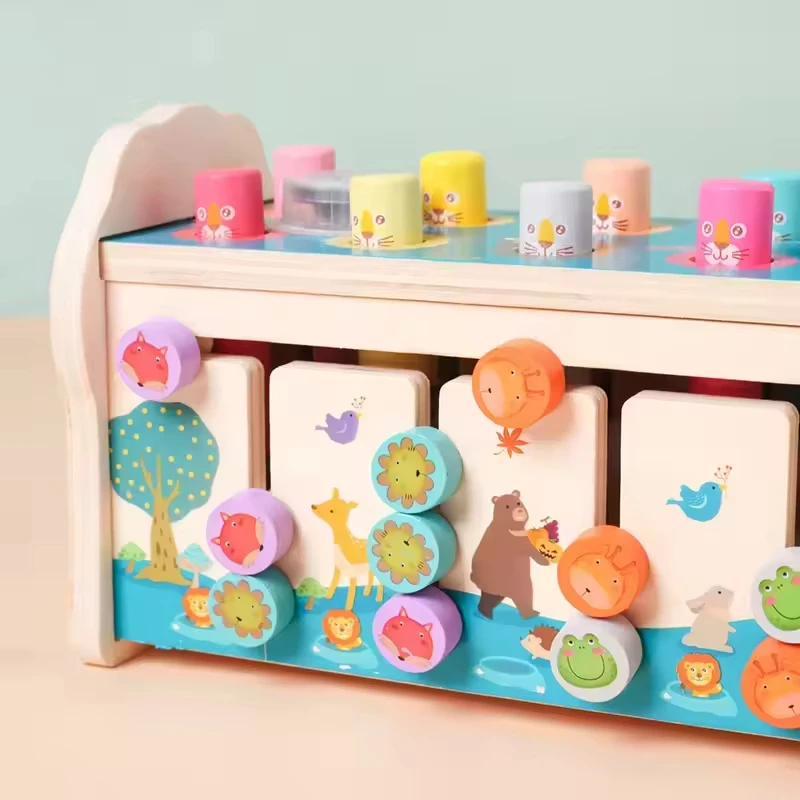 Wooden Hitting Mole Game Catching Insects Game Multifunction Knocking Piano Toys Knocking Pounding Insects and Hitting Mole Game