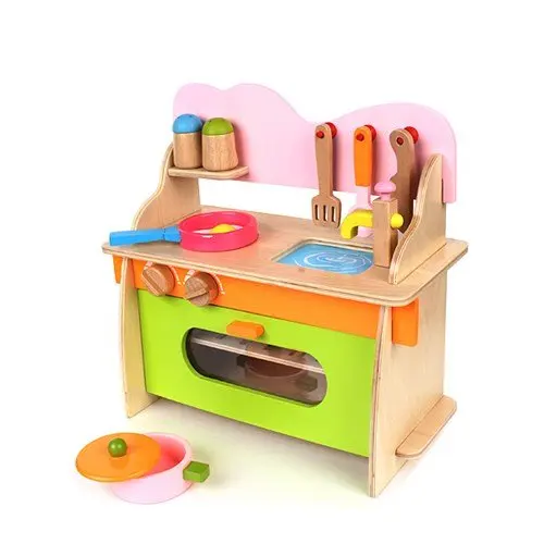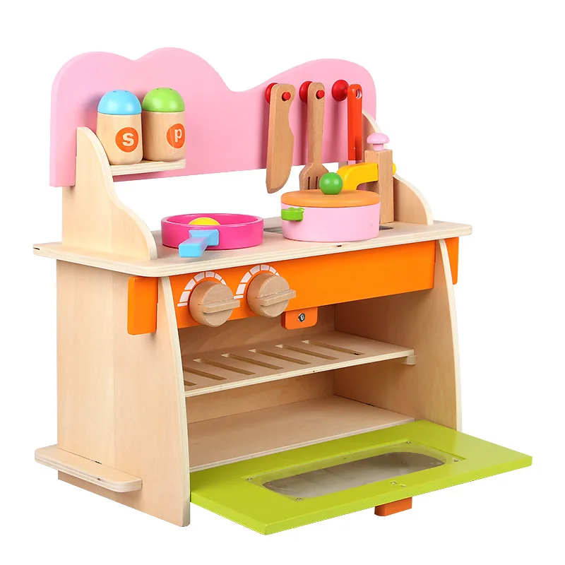 Wooden Kitchen Set Toy Detachable Gas Stove Kitchen Children Play House Educational Toys Cooking Pretend Play- Multi Color