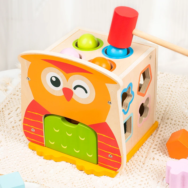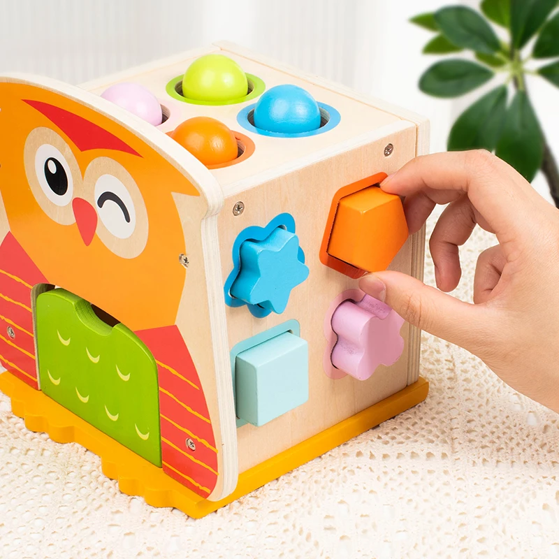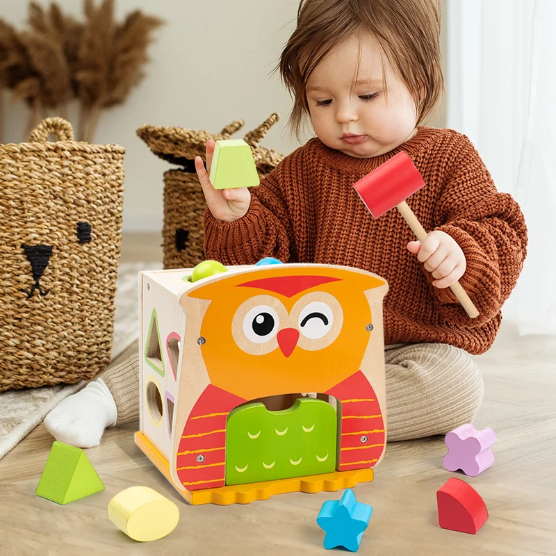 Wooden Montessori Learning Baby Wooden Hooty Owl Shape Sorter Educational Toys