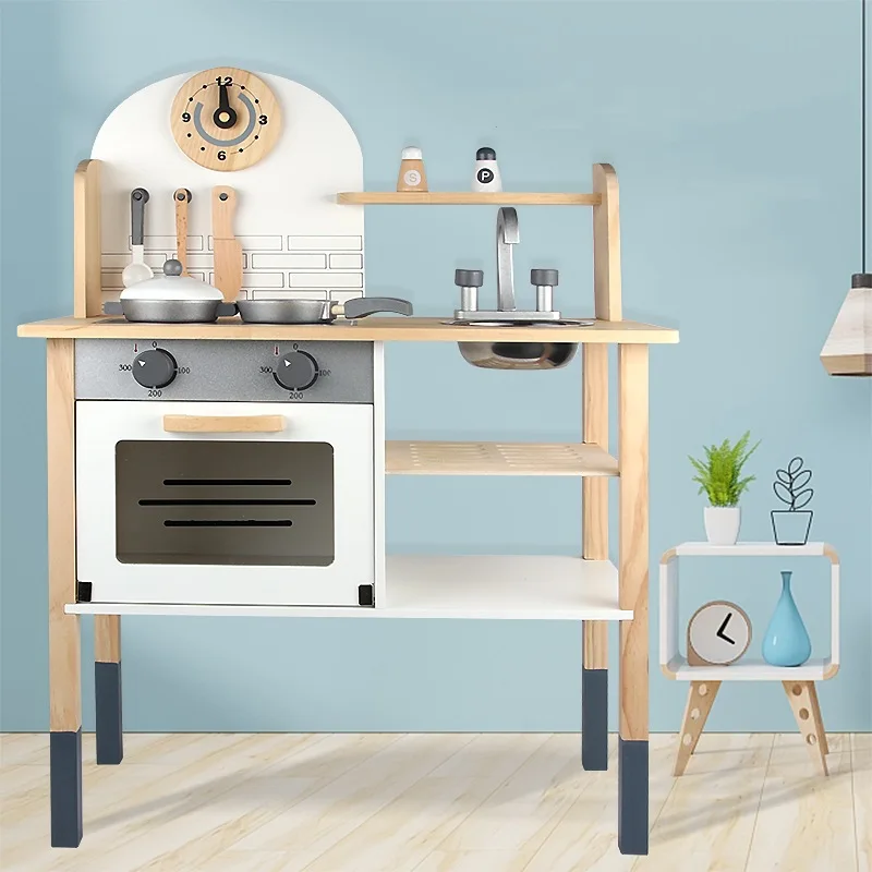 Wooden Kitchen Set for Boys and Girls Ages 3-8 with Sand and Water Pan Children Kitchen Real Boil Classic G Kitchen Play House