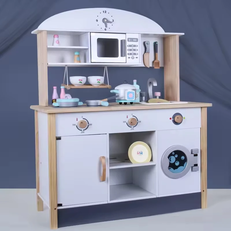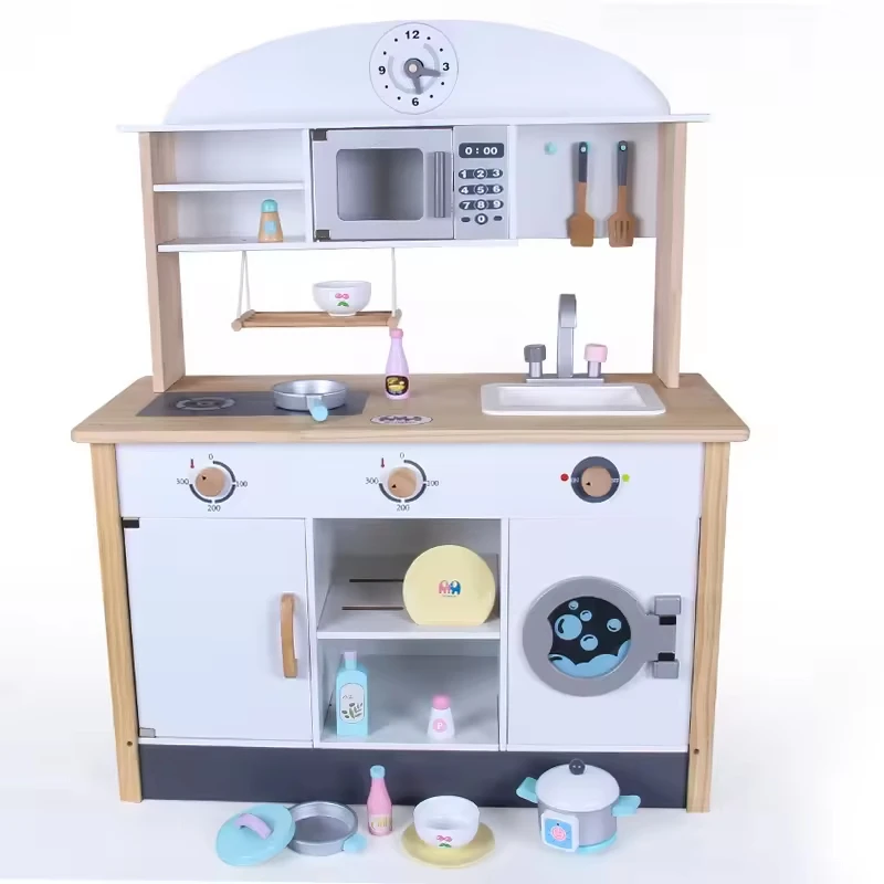 Wooden Cute Funny Real Big Kitchen Children Cooking Play Set Toy Wooden Kitchen Pots Cooking Pretend Play Toys Set