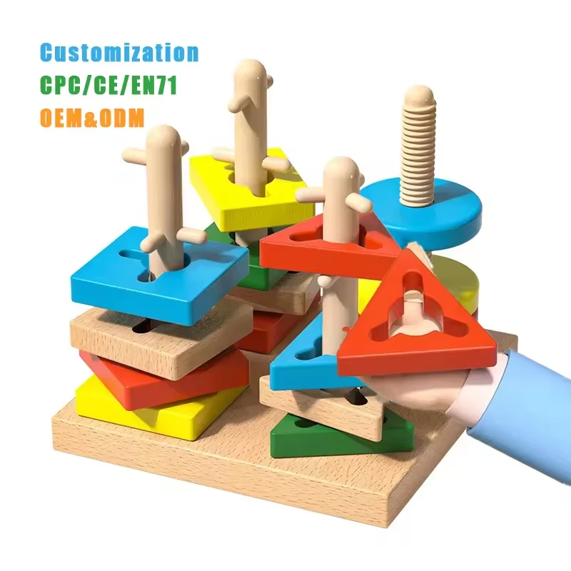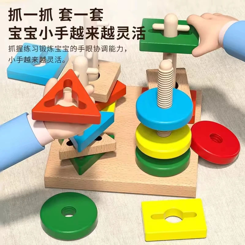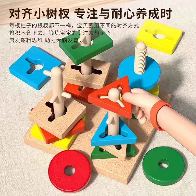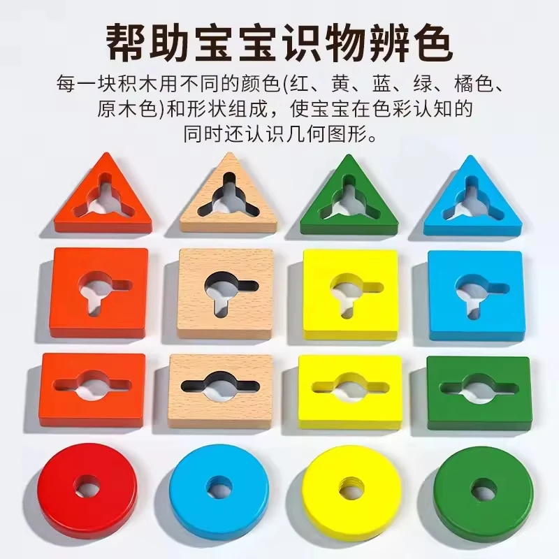 Montessori Toys for 1 to 3-year-old Boys Girls Toddlers Color Recognition Stacker Shape Sorter Wooden Toy Learning Puzzles Gift