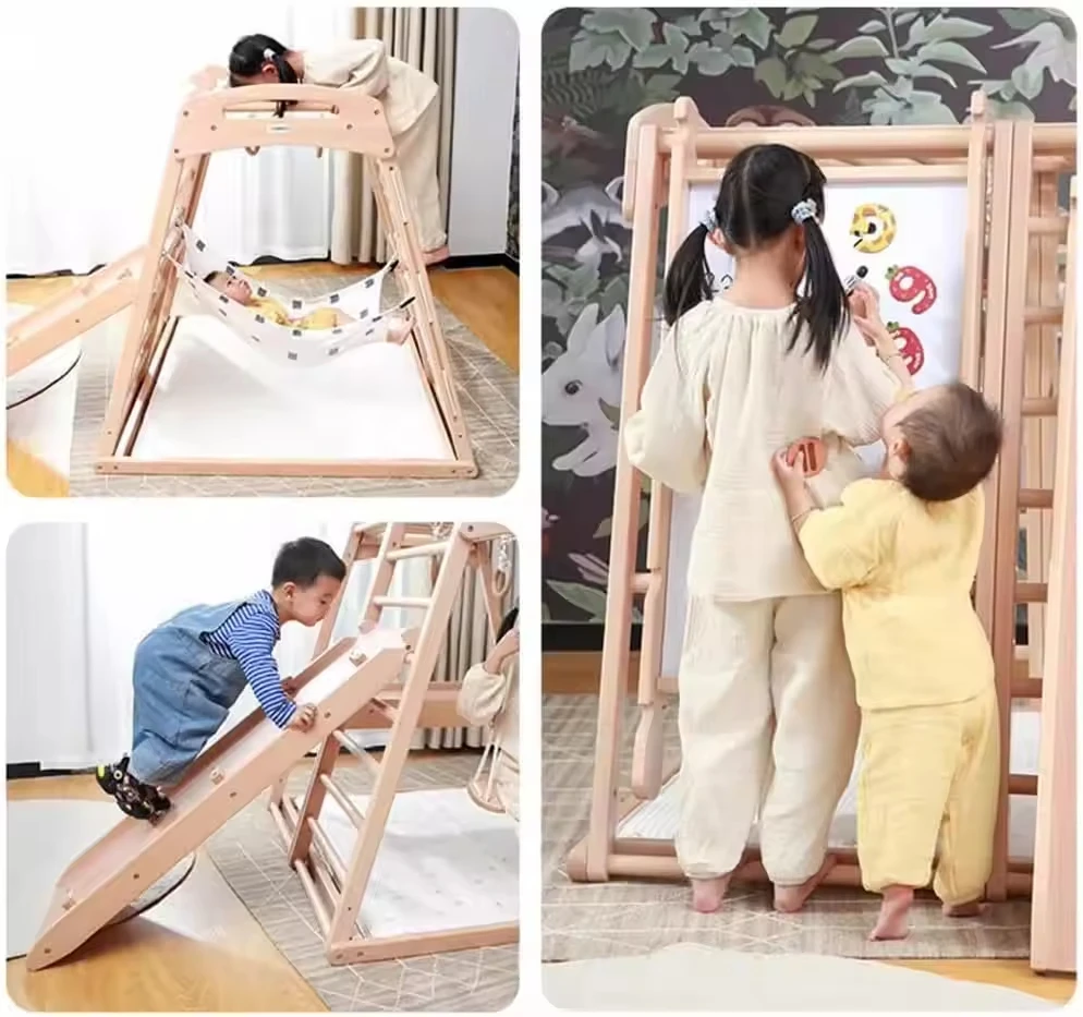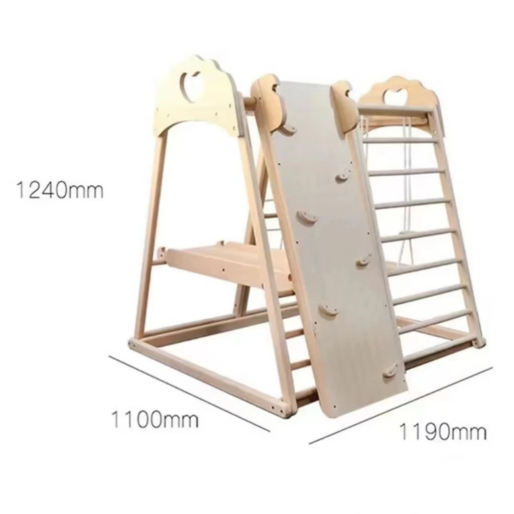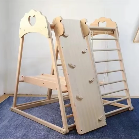 Indoor Playground Slides Equipment Wooden Rope Climbing Toy Kid Climb Frame Swing and Slide for Kids Gym Ring Play Grounds