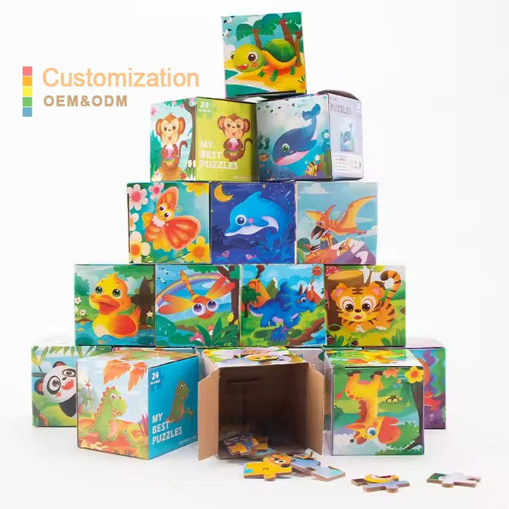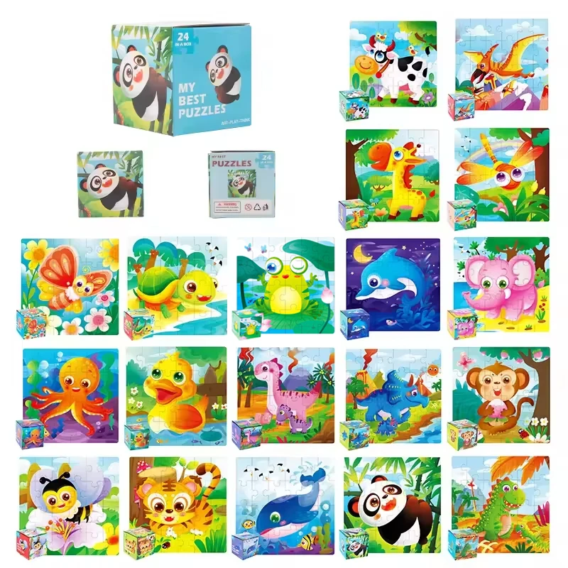 New 24pcs Montessori Classic Carton Paper Jigsaw Puzzle Early Educational Initiation Baby Kids Puzzles Toys for Boy & Girls Gift