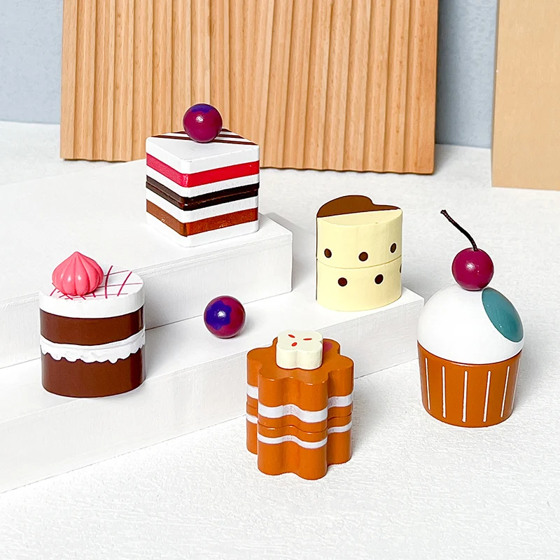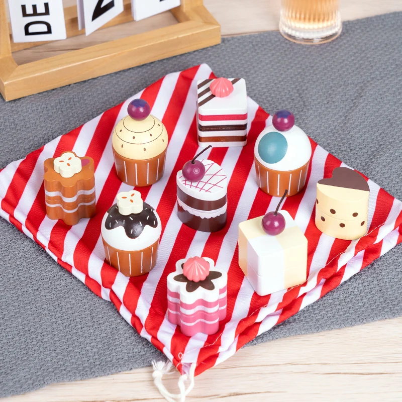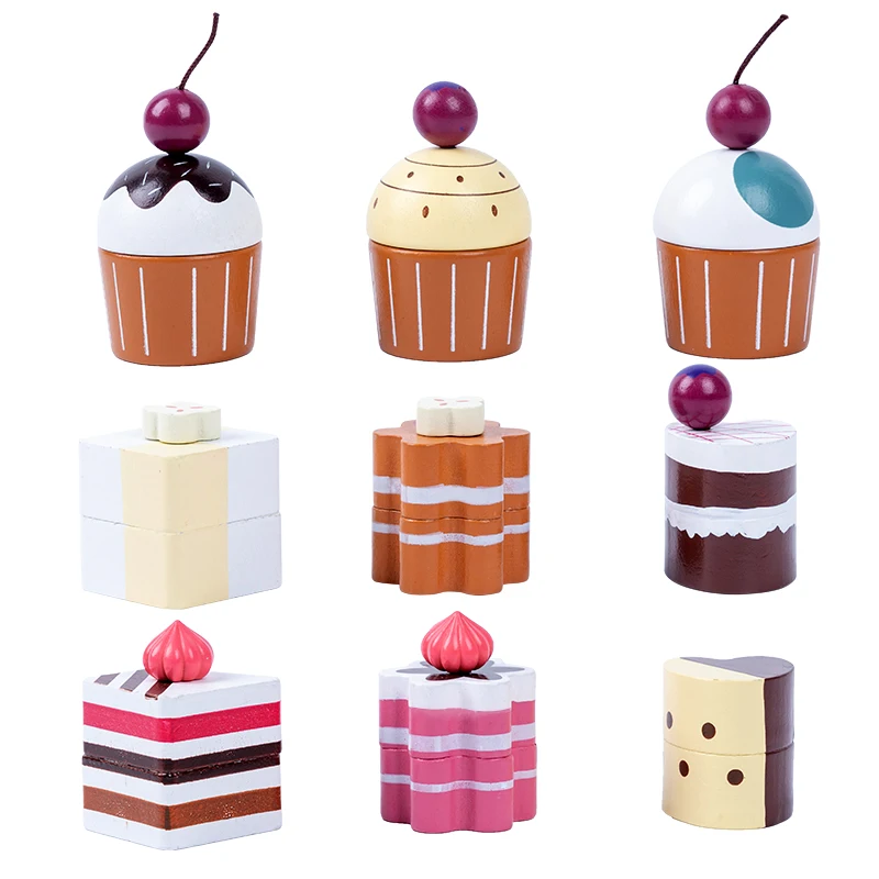 Hot sale New Design Colorful Pretend Play Food Set Wooden Cupcake Creamcake Dessert Toy for Kids
