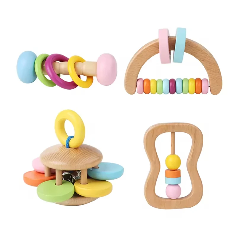 Wooden Montessori Toys Colorful Baby Rattle Set Safe Teether Kids Musical Instrument Wooden Hand Bell Toy Baby Rattle Toys