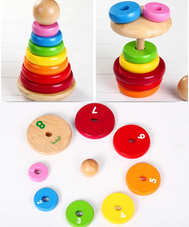 2026 Popular Wooden Stacking Game Rainbow Stacker Blocks Toys Montessori Stacking Toy Educational Rainbow Tower Toys Kids Puzzle