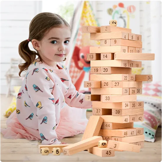 Custom Wooden Stacking Tower Wood Building Blocks DIY Domino Game Kids Developmental Number Blocks Toys