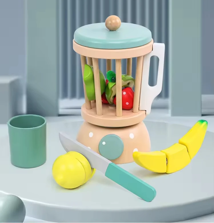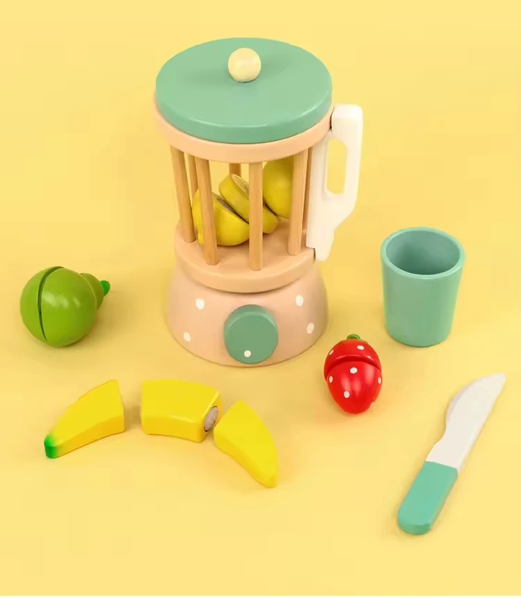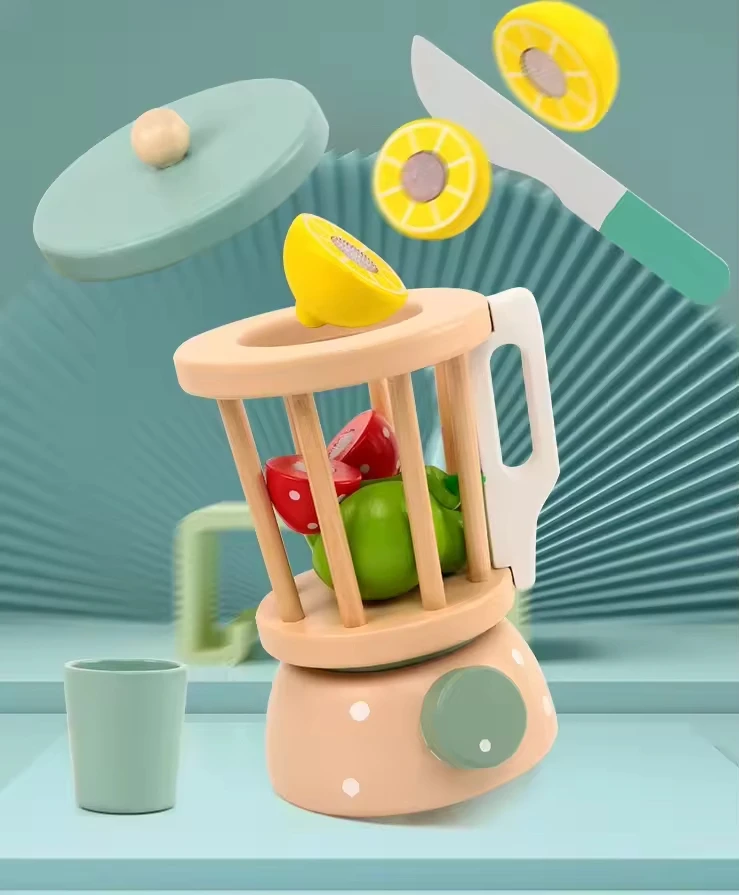 Wholesale Wooden Kitchen Toys Kids Role Play Simulation Fruit Juicer Wooden Toy Wooden Fruit Cutting Game Kids