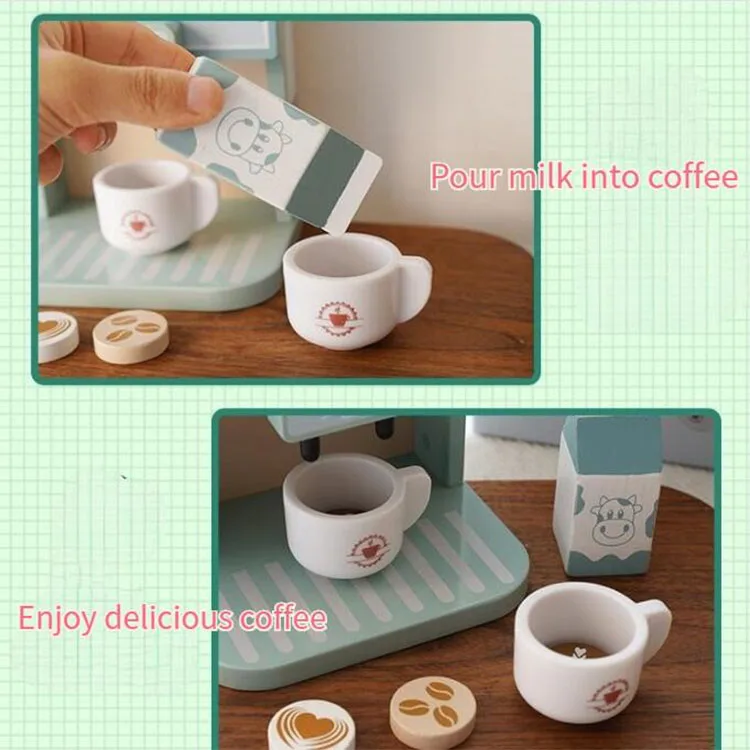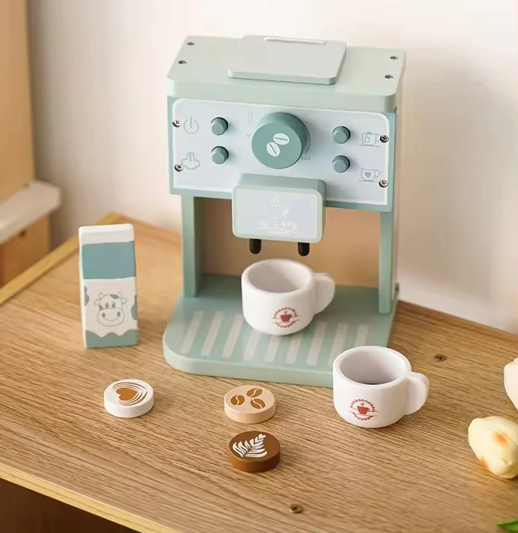 Children Role-Play Kitchen Mini Simulation Coffee Machine Toy Wooden Coffee Maker for Kids Children's Toy Pretend Play Toys