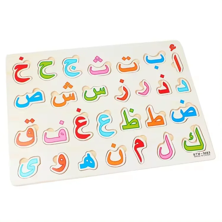 Wooden Jigsaw Puzzles Baby Wood Puzzles Arabic Alphabet Puzzle Arabic 28 Letters Board Kids Early Learning Educational Toys