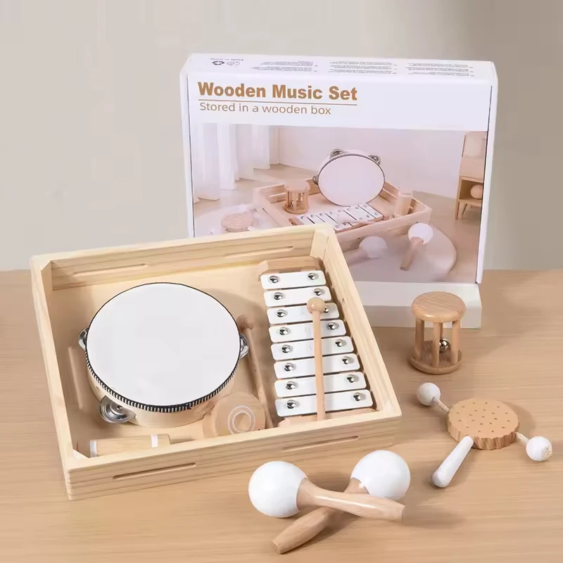 Children Montessori Learning Toy Music Instrument Play Set Sound Sensory Game Early Educational Baby Music Wooden Toys for Kids