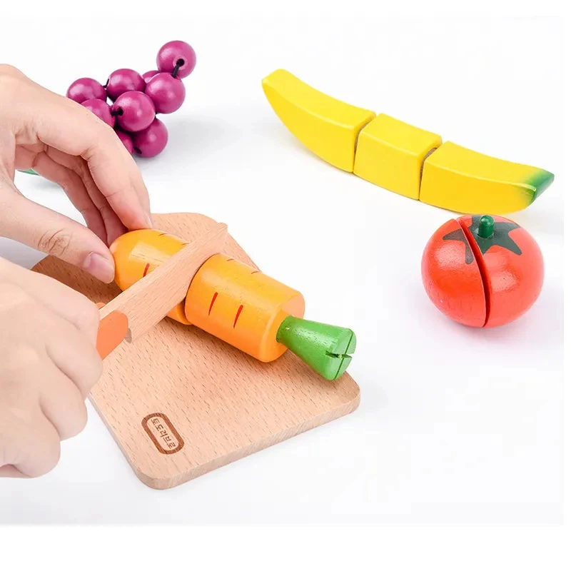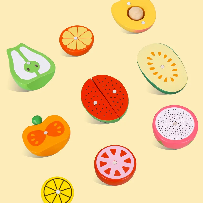 Wooden Baby Simulation Fruit and Vegetable Magnets Cut to See Children's Magnetic Cut and Play Kitchen Play House Toys