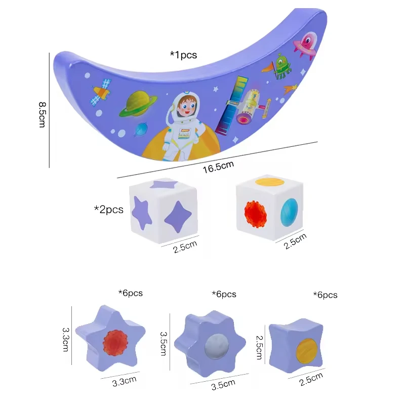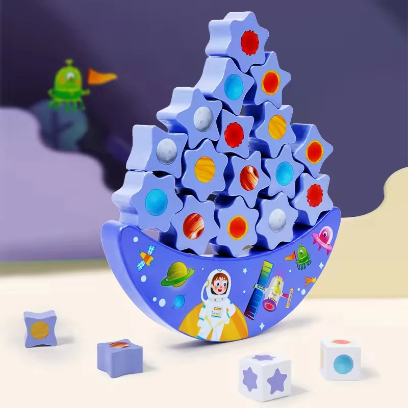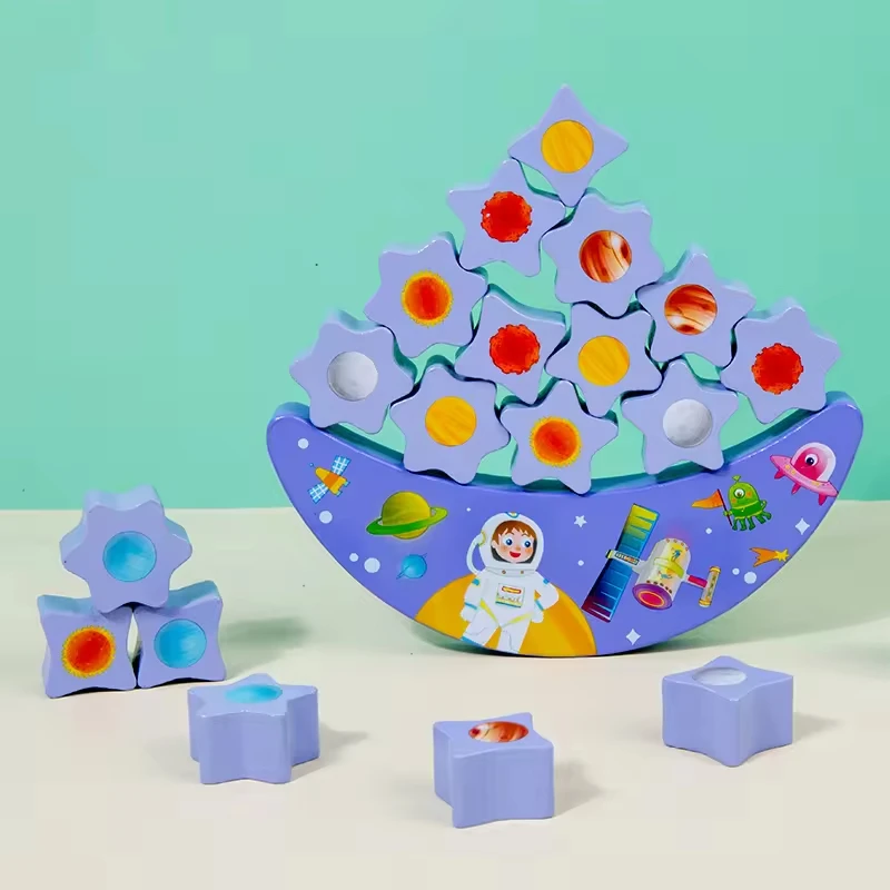 New Arrival DIY Style Wood Block Set Purple Stacked Building Blocks Starry Sky Moon Seesaw Early Education Toy for Baby Children