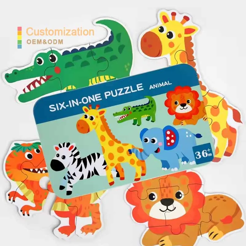 High Quality Early Educational the 6-in-1 Iron Box Puzzle Set Jigsaw Cartoon Wooden Iron Box Puzzles Wooden Puzzles for Kids