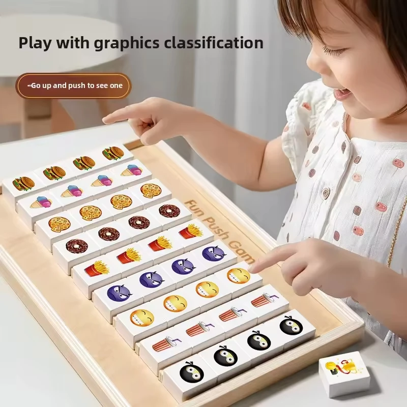 Wooden Puzzle Board Game Kids Fun Push Games Pattern Pairing Toy Montessori Learning Toys for Boys and Girls