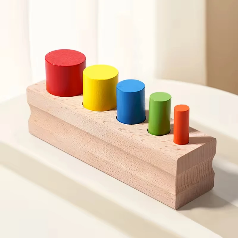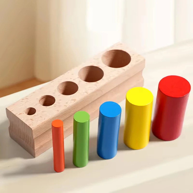 Montessori Sensory Matching Teaching Aids Memory Wooden Sticks Cylinder Socket Blocks Colorful Educational Cylindrical Toys
