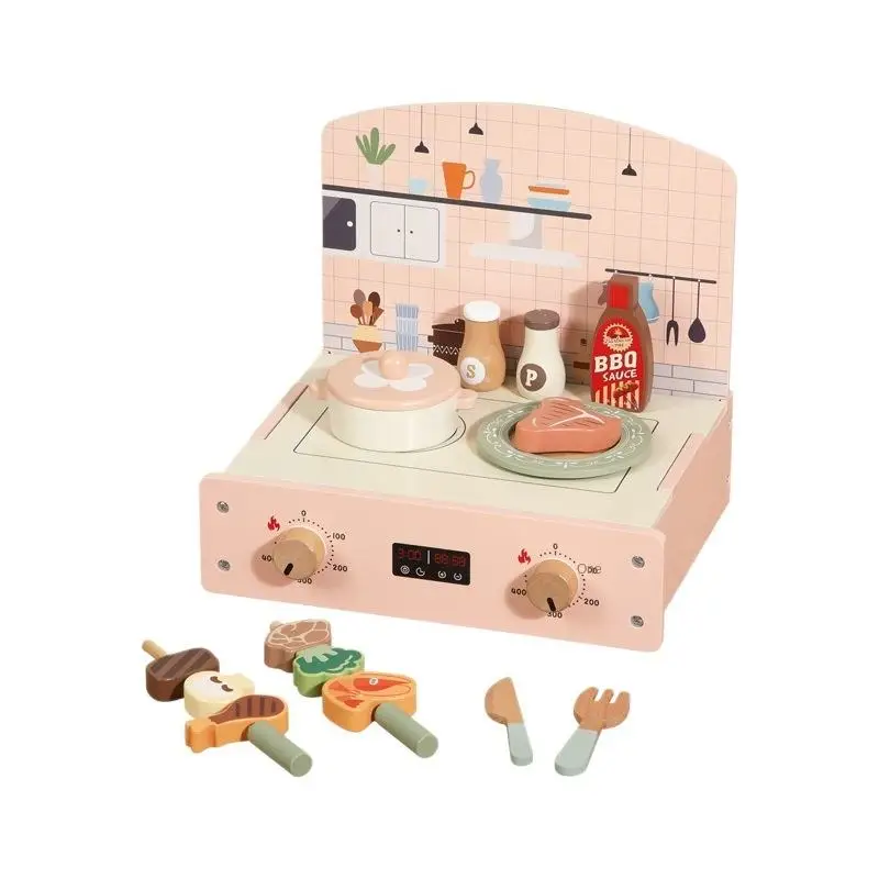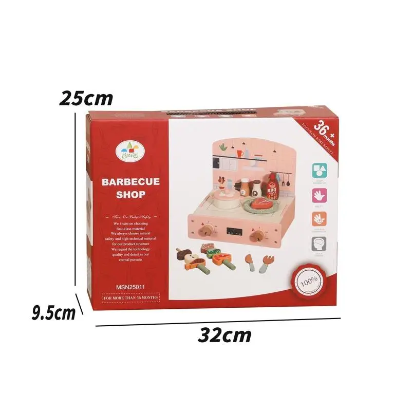 2026 New Design Baby Wooden Simulation Role Play Foldable Barbecue Grill Educational Pretend BBQ Kitchen Toys for Boys Girls