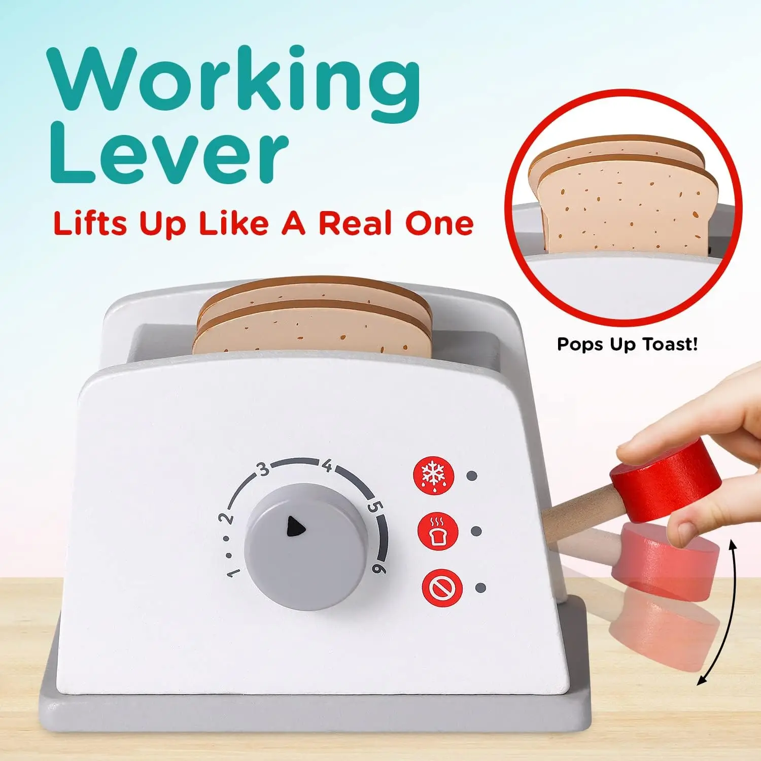 Toaster Toy with Kitchen Accessories 8 Pc Set Interactive Early Learning Wood Play Set with Wooden Bread Plate and Utensil