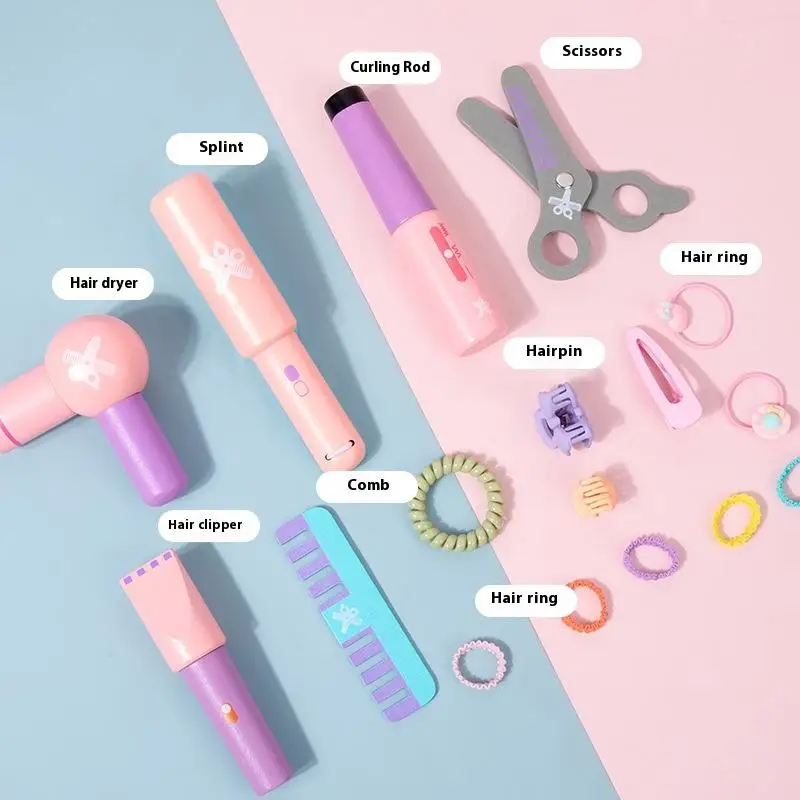 New Wooden Children Barber Role Play Games Beauty Fashion Pretend Toy Interactive Cosmetic Set Early Educational Toys for Kids