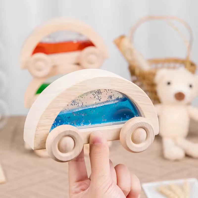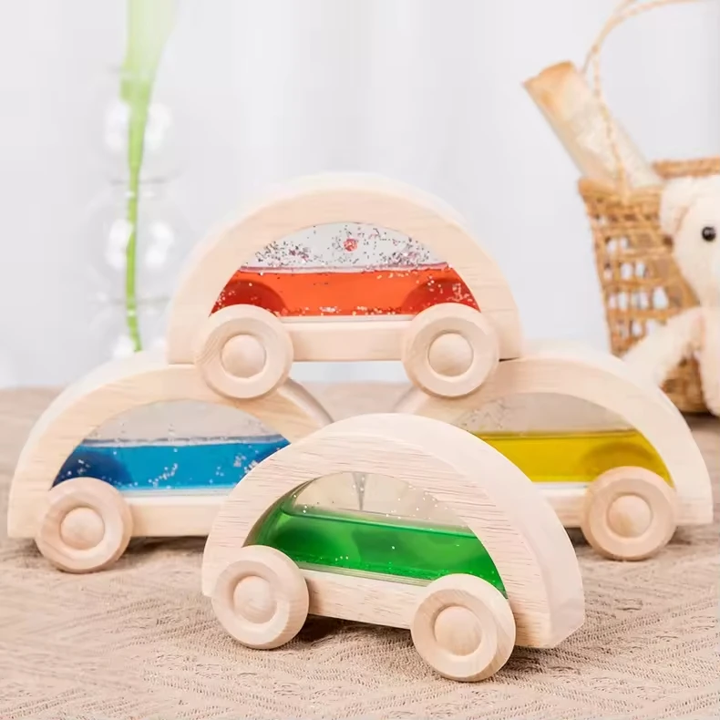Wooden Montessori Toys Acrylic Blocks Educational Geometric Ring Blocks Wooden Car Toys Color Light Photosensitive Training Toys