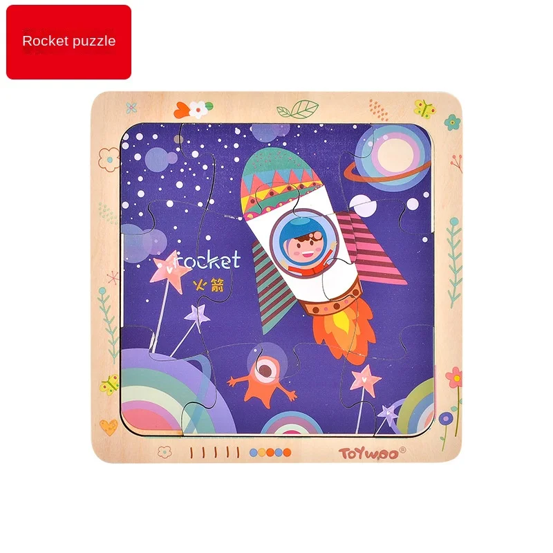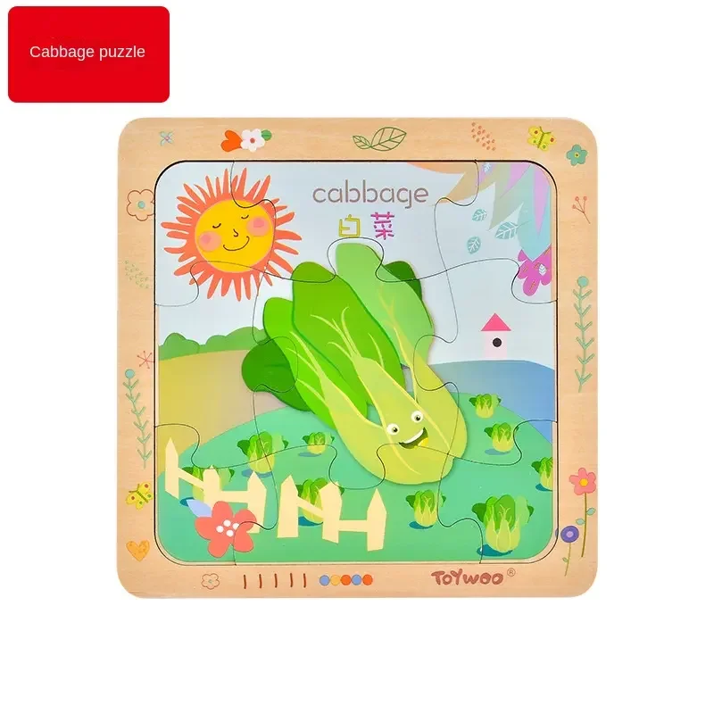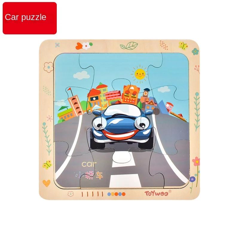 Infant Children Wooden9Piece Puzzle Early Education Educational Toys1-3-4-Half-year-old Baby Boy and Girl Cartoon Animal