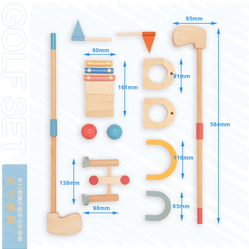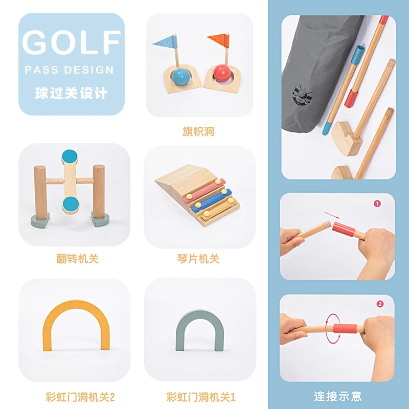 Kids Wooden Golf Set 2 Player Game Set with Carry Bag Wooden Golf Set Indoor Sports Games for Kids Toddlers