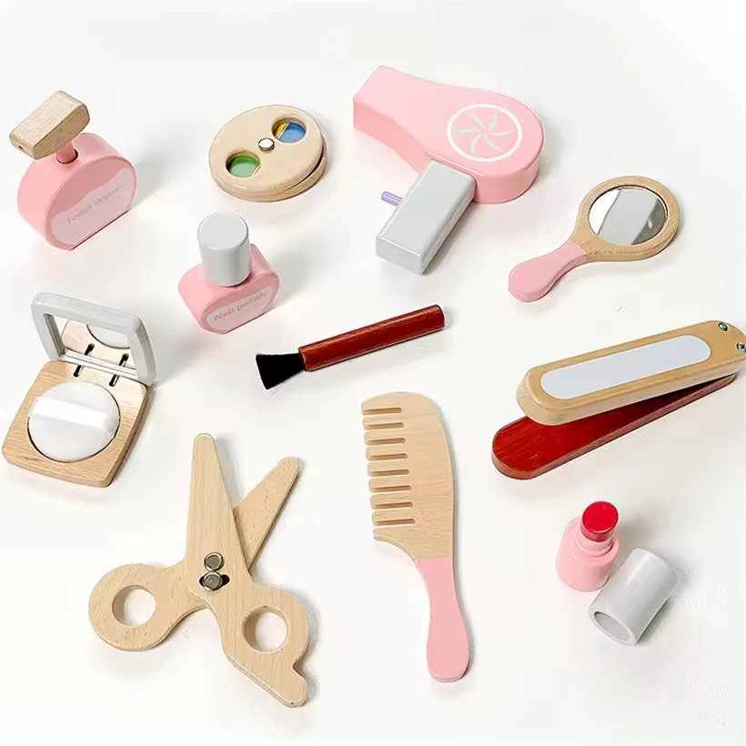 New Girls Wooden Dress up Game Princess Educational Role Pretend Make up Role Play Simulation Dressing Table Wooden Toys for Kid