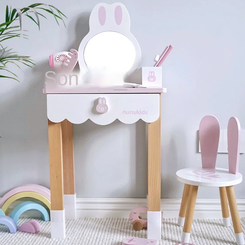 Children's Simulation Dresser Princess Makeup Table Play House Wooden Toy Girl Kids' Birthday Present 2-6 Years Old