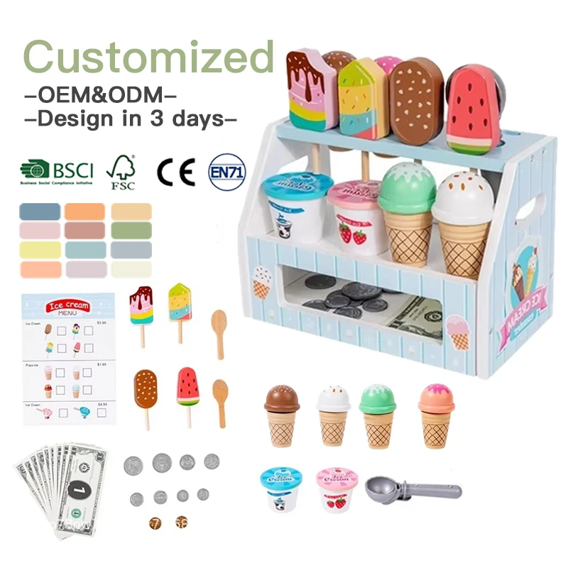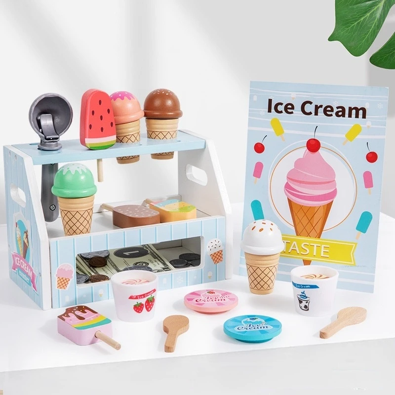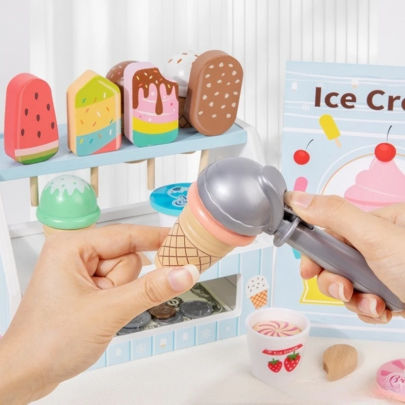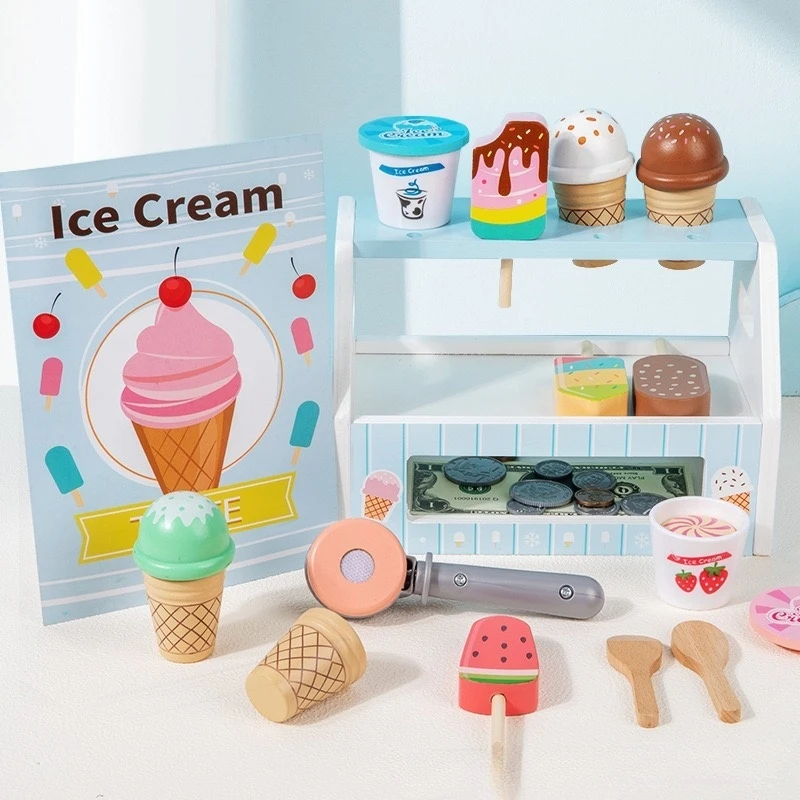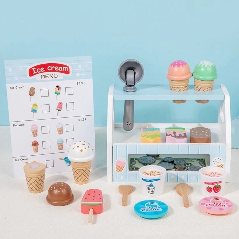 Miniature Blue Children's Wooden Play House Toy Stick Ice Group Toy Ice Cream Cone Ice Cream Popsicle Model Toy
