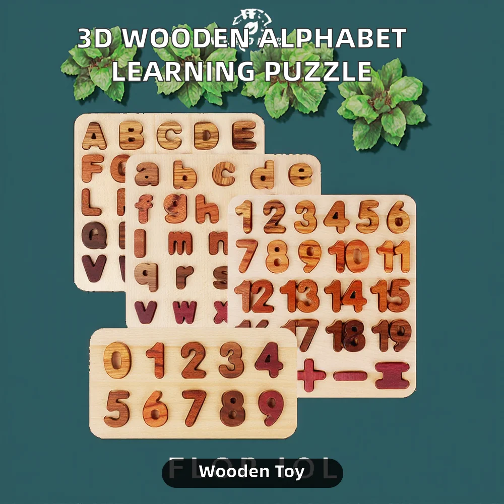 Wooden Alphabet Number 3D Learning Puzzle DIY Montessori Early Educational Activity Boards Games Toys for Kids Child Boys Girls